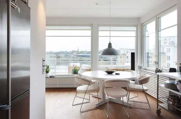 В небольшой по площади кухне угловое окно можно сделать обеденной зоной. Там всегда будет светло и уютно, а во время еды можно наслаждаться окружающими видами.