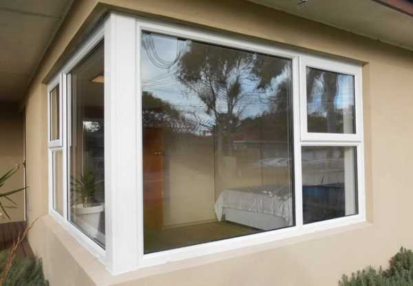 - Угловое окно, выполненное из нескольких элементов, может стыковаться в углу рамами. Для выполнения работы не используются специальные профили, а место соединения рам заделывается непрозрачным герметиком подходящего оттенка.
