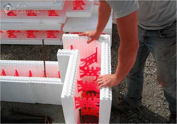 ΠΠΎΡΠ»Π΅ Π·Π°ΡΡΡΠ²Π°Π½ΠΈΡ Π²ΡΡΠ°Π²Π½ΠΈΠ²Π°ΡΡΠ΅Π³ΠΎ ΡΠ»ΠΎΡ ΠΌΠΎΠ½ΡΠΈΡΡΠ΅ΡΡΡ ΠΎΠΏΠ°Π»ΡΠ±ΠΊΠ° Π΄Π»Ρ ΡΡΠ½Π΄Π°ΠΌΠ΅Π½ΡΠ° ΠΈΠ· ΠΏΠ΅Π½ΠΎΠΏΠΎΠ»ΠΈΡΡΠΈΡΠΎΠ»Π°. ΠΠ»ΠΎΠΊΠΈ ΠΏΠ΅Π½ΠΎΠΏΠΎΠ»ΠΈΡΡΠΈΡΠΎΠ»Π° Π½Π°ΡΠ°ΠΆΠΈΠ²Π°ΡΡΡΡ Π½Π° Π°ΡΠΌΠ°ΡΡΡΠ½ΡΠ΅ ΠΏΡΡΡΡΡ, ΡΠΎΡΡΠ°ΡΠΈΠ΅ ΡΠ½ΠΈΠ·Ρ ΡΡΠ°Π½ΡΠ΅ΠΈ. ΠΠ΅ΠΆΠ΄Ρ ΡΠΎΠ±ΠΎΠΉ Π±Π»ΠΎΠΊΠΈ ΡΠΎΠ΅Π΄ΠΈΠ½ΡΡΡΡΡ ΠΏΠΎ ΡΠΈΠΏΡ Β«ΠΏΠ°Π·-Π³ΡΠ΅Π±Π΅Π½ΡΒ», Π° ΡΠ°ΠΊΠΆΠ΅ Π΄ΠΎΠΏΠΎΠ»Π½ΠΈΡΠ΅Π»ΡΠ½ΡΠΌΠΈ ΡΠΊΠΎΠ±Π°ΠΌΠΈ. ΠΠΎ Π²Π΅ΡΡΠΈΠΊΠ°Π»ΠΈ Π±Π»ΠΎΠΊΠΈ Π²ΡΠΊΠ»Π°Π΄ΡΠ²Π°ΡΡΡΡ ΡΠ°ΠΊ ΠΆΠ΅ Ρ ΠΏΠ΅ΡΠ΅Π²ΡΠ·ΠΊΠΎΠΉ, ΠΊΠ°ΠΊ ΠΊΠ»Π°Π΄ΡΡΡΡ ΠΊΠΈΡΠΏΠΈΡΠΈ. Π’Π°ΠΊΠΈΠΌ ΠΎΠ±ΡΠ°Π·ΠΎΠΌ, ΠΏΠ΅ΡΠ΅ΠΊΡΡΠ²Π°ΡΡΡΡ Π²Π΅ΡΡΠΈΠΊΠ°Π»ΡΠ½ΡΠ΅ ΡΠ²Ρ. ΠΠ° ΡΠ³Π»Π°Ρ Π±Π»ΠΎΠΊΠΈ ΡΠ°Π·ΡΠ΅Π·Π°ΡΡΡΡ ΠΏΠΎΠΏΠΎΠ»Π°ΠΌ. ΠΠ½ΠΈ Π»Π΅Π³ΠΊΠΎ ΡΠ΅ΠΆΡΡΡΡ Π²ΡΡΡΠ½ΡΡ. Π‘ΡΡΠΎΠΈΡΠ΅Π»ΠΈ ΠΏΡΠΈΠΌΠ΅Π½ΡΡΡ Π΄Π»Ρ ΡΡΠΎΠ³ΠΎ ΡΠΏΠ΅ΡΠΈΠ°Π»ΡΠ½ΡΠ΅ ΡΡΠ°Π½ΠΊΠΈ, ΠΊΠΎΠ³Π΄Π° ΡΡΠ΅Π±ΡΠ΅ΡΡΡ Π²ΡΡΠΎΠΊΠ°Ρ ΠΏΡΠΎΠΈΠ·Π²ΠΎΠ΄ΠΈΡΠ΅Π»ΡΠ½ΠΎΡΡΡ.