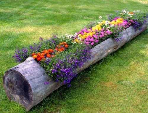 Кстати, возвращаясь к спиленным деревьям, не только пень, но и ствол может послужить несколько сезонов в качестве аутентичной клумбы.