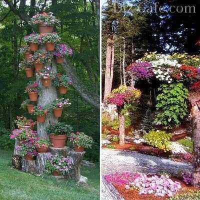 Если на вашем участке ранее произрастало большое дерево, а теперь на его месте сиротливо стоит пень, то не спешите его корчевать. Предлагаю использовать его в качестве оригинальной приподнятой клумбы. Также в прикорневой зоне можно высадить низкие цветы.