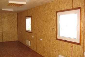 Постройка обшита ОСП изнутри.Благодаря такой технологии строения панели надежно соединяются с основой здания. Конструкция любого каркасного дома подразумевает использование материалов разного размера, поэтому плиты все равно придётся разрезать. Задачей профессионала, составляющего проект, является то, чтобы таких манипуляций со строительным материалом было меньше.