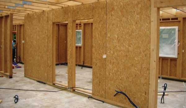 Плиты ОСБ внутри каркасного дома также используют. Материал повышает звуко- и теплоизоляцию строения.