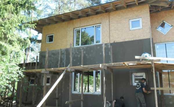 Мокрый фасад на ОСП.При выполнении мокрого фасада важно помнить, что материалы наносятся только после высыхания предыдущего слоя. Если каркасный дом ОСБ снаружи облицован качественно, то у строения увеличивается эксплуатационный период без потери внешней привлекательности.