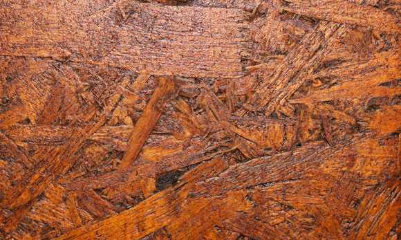 ОСБ производят из древесной щепы и крупной стружки, склеивая их при высокой температуре синтетическими смолами.