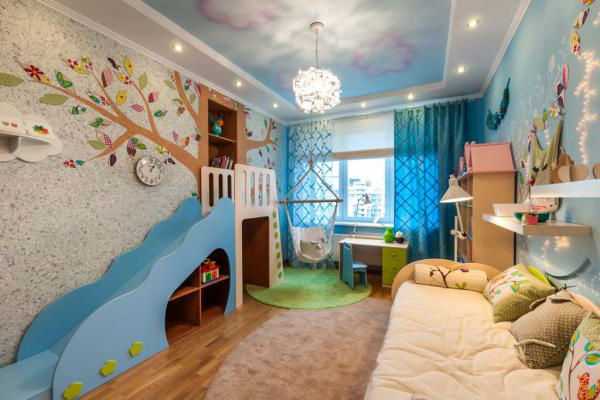 Варианты арт-дизайна жидкими обоями — рисунок в детской