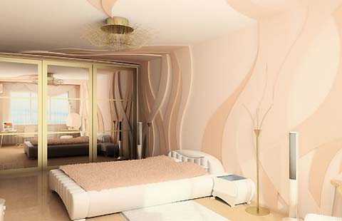 к оглавлению ↑Оформление жидкими обоями интерьера спальни