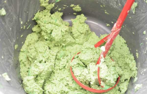 - Многие отмечают, что в готовой смеси после её набухания остаётся большое количество комков, которые могут повлиять на нанесение и качество готового покрытия. Но чтобы предотвратить их образование, можно периодически перемешивать состав в процессе его подготовки.