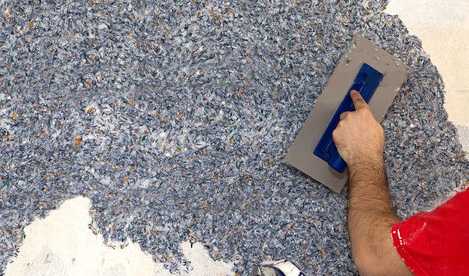 - Начинайте постепенно добавлять в воду порошок, одновременно размешивая состав. Мешать следует рукой, так как использование миксера или других инструментов может повредить хрупкие волокна целлюлозы и повлиять на фактуру материала.