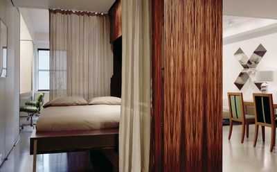Иначе ее можно назвать подъемная, встроенная или кровать-шкаф, если она прячется именно в этом предмете мебели. Смысл ее как раз в удачном дневном исчезновении. А главная задача #8212 эстетически продуманная и ощутимая экономия пространства комнаты. Помимо гостиной-спальни, подъемная кровать отлично впишется в холостяцкую спальню-кабинет или рабочую студию-спальню. Днем в этой комнате можно полноценно работать, а ночью #171 открыть#187 кровать и хорошо отдыхать.