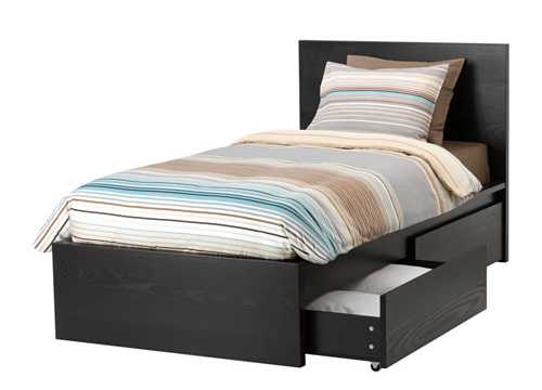 Всемирно известная фирма выпускает кровати на любой вкус. У большинства изделий присутствуют дополнительные функции, например, выдвижные ящики для хранения подушек и одеял.