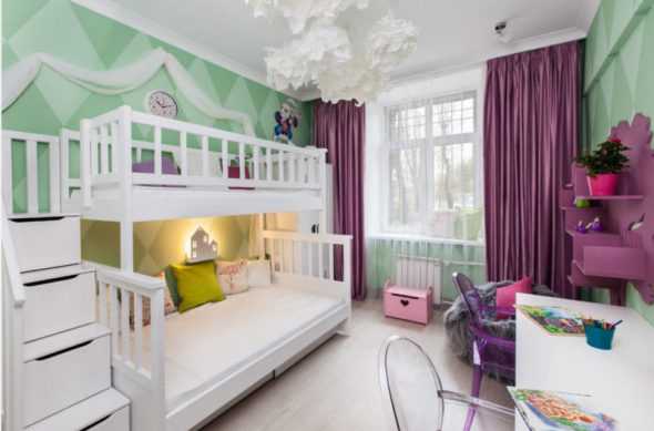 При этом важно отметить, что конструкция в детской не должна быть громоздкой и «выпадать» из общего интерьера помещения.