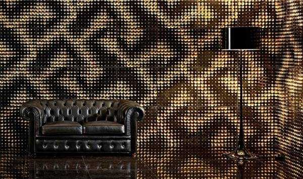 Этот материал применяется в дизайне ни так давно, но уже успел зарекомендовать себя с самой лучшей стороны. Обычно ими украшают одну отдельно взятую стену с целью акцентирования внимания на определенной области помещения. Такая красота не всем по карману, поэтому и встречается крайне редко.