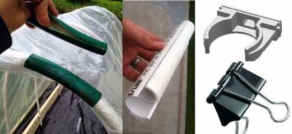 - пластиковые трубы. Легко обрабатываются, монтируются, не гниют. Имеют низкую теплопроводность. Не рвут полиэтиленовую плёнку. Из-за низкой прочности не подходят для устройства конструкций со стеклянными рамами;