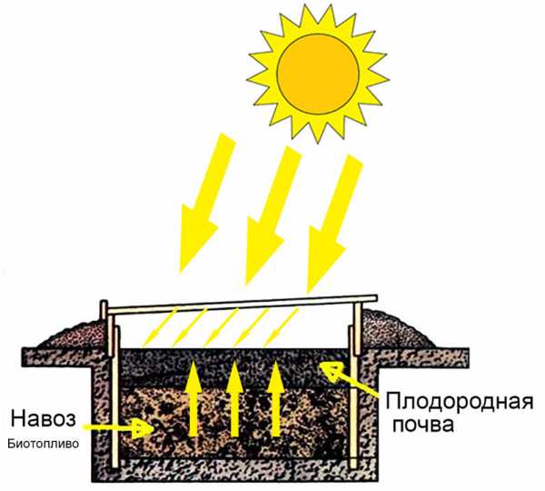 Подготовленную траншею заполняют биотопливом на высоту около 0,3 м. Для этого навоз смешивают с опилками или соломой в соотношении 1:2. Засыпанный слой обязательно трамбуют. Сверху на биотопливо насыпают слой плодородного грунта толщиной 0,2 м, а затем укладывают солому. Она не только будет выступать в качестве теплоизолятора, но и станет преградой для сорняков.
