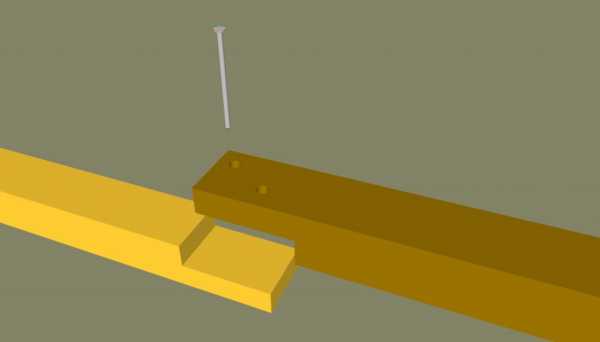| Брус отрезают в размер. При отсутствии материала нужной протяжённости, элемент наращивают. | |