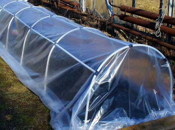 - полиэтиленовая плёнка. Доступный материал. Позволяет быстро сформировать укрытие. Имеет невысокую прочность. Часто провисает и рвётся. Не способен обеспечить достаточный уровень теплоизоляции;
