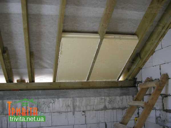 При утеплении чердачных помещений полистирольные плиты укладываются между стропилами. При этом заполняется пространство, равное ширине балок (стропил) перекрытия дома.