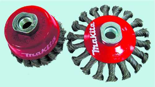 Такие насадки представляют собой металлический круг со вставленной в него щетиной из металлической проволоки. Проволока может располагаться как по периметру круга, параллельно диску, так и перпендикулярно поверхности по принципу щетки.