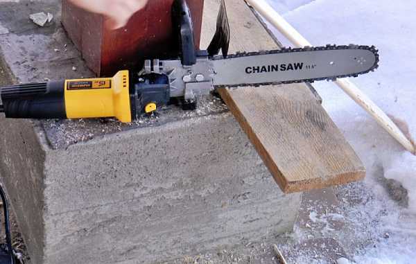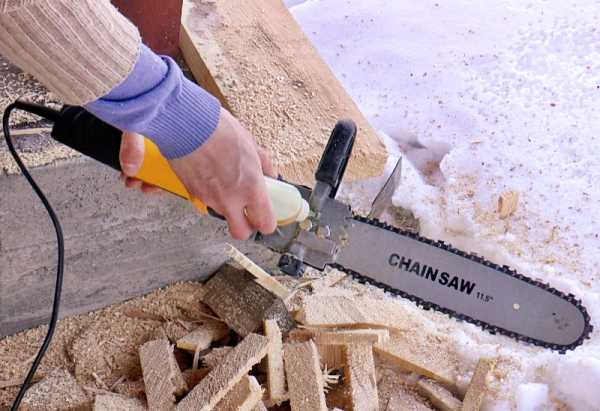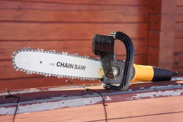 Народные умельцы изготавливают также ручную цепную пилу из болгарки. Правда, такой инструмент опасен для пользователя: отсутствие стопора цепи может привести к непредсказуемым последствиям. Кроме того, цепь не смазывается, что приводит к ее быстрому износу.