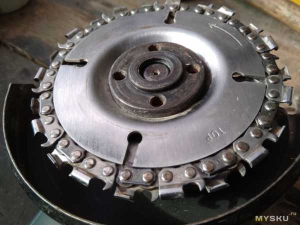 Устанавливаем ее, вместе с цепью, на основание (естественно цепь сперва ставим неправильно, затем вспоминаем как надо и исправляемся):