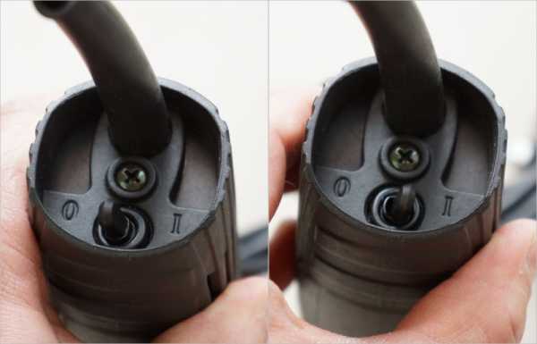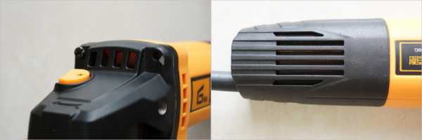 А вот это фиаско — единственный выключатель болгарки. Ну то есть совсем единственный, нефиксируемого курка под указательный палец или хотя бы переключателя нет. Расположен выключатель в ж… задней части болгарки, рядом с проводом питания, хорошо хоть имеет длинный рычажок: