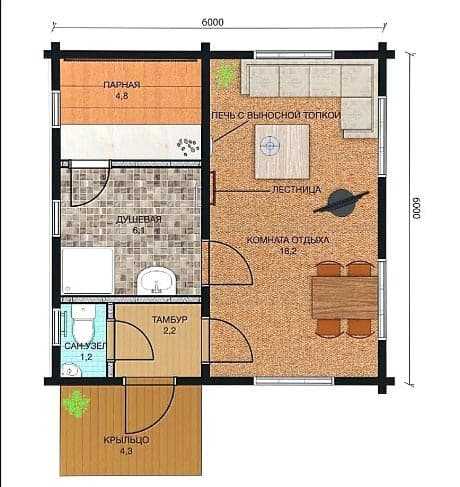Традиционная русская баня состояла из двух помещений – прихожей и парной. Современные сауны на загородном участке имеют несколько комнат с отоплением, санузлы, душевые. Они вполне пригодны для временного проживания и в качестве дачного дома. Грамотная планировка бани 6 на 6, 3 на 6 либо 6 на 4, поможет сократить расходы на строительство и эксплуатацию здания, обеспечит комфорт и безопасность людей, находящихся в них.