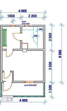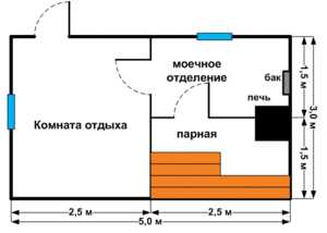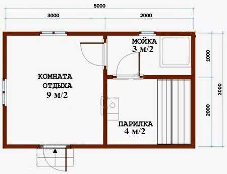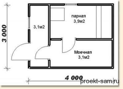 Проект бани 3х5 с разделенными парилкой и мойкой