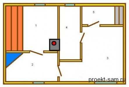 В первую очередь необходимо решить вопрос о количестве помещений в бане, после чего можно приступать к вопросу о расположении печки. Чтобы достичь большего удобства, дверцу топки рекомендуется располагать таким образом, чтобы она выходила в предбанник, каменку следует располагать в парилке, а ёмкость с водой – в пространстве моечного отопления.