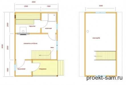 планировка внутри, мойка и парилка отдельно, варианты чертежей, схемы и планы, с мансардой и туалетом, терассой
