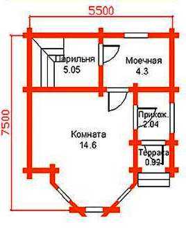 Проект бани 5х5 с раздельными парилкой и мойкой