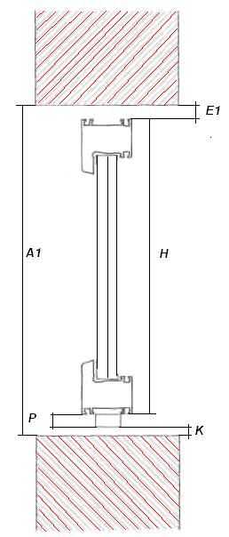 Определение высоты окна без четверти L, H – размер для коробки оконных блоков; А1 – размеры для просвета оконных проемов; E1 – размеры для монтажных зазоров; Р – высота для подставочного профиля; К – размер для нижнего монтажного зазора