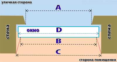 Нужно знать, какое расстояние между верхней стеной и подоконником, толщину самого подоконника. Значение Д является контрольным. Будущее окно не может быть больше этого значения. Если данные не совпадают, измерения придется провести еще раз.