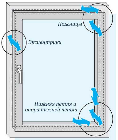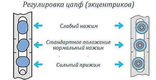 - если ручка плохо встает в положение «закрыто», это говорит о слишком сильном прижатии створки к раме — необходимо отрегулировать цапфы по всему периметру, немного их ослабив.