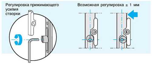 Помните, что такая регулировка осуществляется только в открытом положении створки, иначе механизмы можно повредить.
