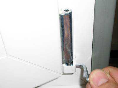 - Далее нужно взять плоскогубцы (для гладких поверхностей) или плоскую отвертку (для шлица) или ключ-шестигранник (для внутреннего углубления) и последовательно повернуть штифты таким образом, чтобы их большая часть сдвинулась к уплотнителю.