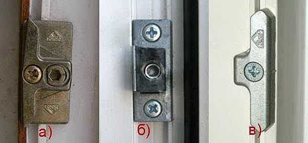 Иногда геометрия оконного проема меняется настолько сильно, что даже сдвинув створку на максимум, мы не получаем желаемого результата: пластиковое окно не закрывается. Что делать в этом случае? Если на ответной части есть регулировка, как в варианте а и б на фото, попробуйте обойтись малой кровью — подкрутите еще тут. Принцип тот же: вставляете шестигранный ключ и вращаете его по часовой стрелке, выдвигая на максимум.