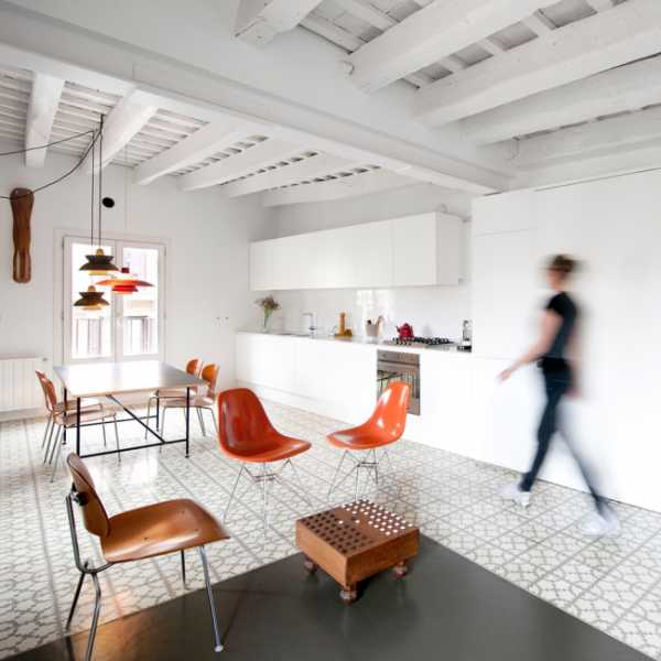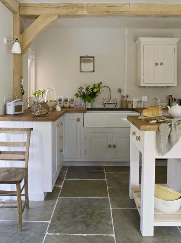 Именно поэтому на пол в кухне рекомендуется укладывать не линолеум и тем более не паркет, а жесткую плитку — это наиболее долговечный материал. Плиточный пол всегда отличается повышенной прочностью, его легко мыть, а если возникнет необходимость реставрировать покрытие, достаточно просто заменить испорченные плитки — снимать весь пол не обязательно.