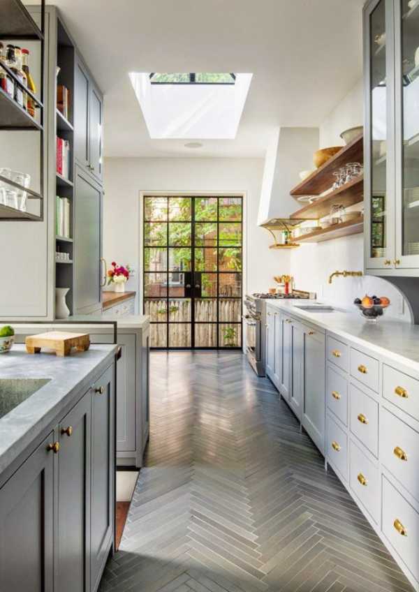 Плитка на кухне необязательно должна быть именно квадратной. Она может быть и прямоугольной. К примеру, плитка под дерево в виде длинных «половиц» поможет расширить маленькую кухню, если уложить ее вдоль самой длинной стены — помещение таким образом как бы «вытянется».