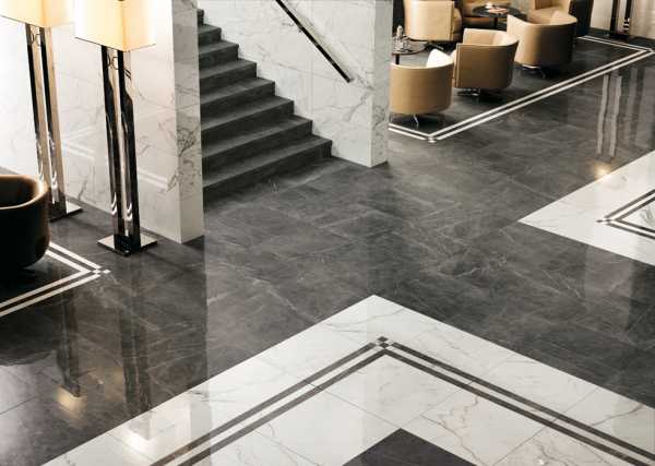 Такое покрытие идеально для большой площади, в классическом стиле. Керамогранитный материал, производят с помощью прессования, продукция получается очень прочной, с повышенной стойкостью к влаге. На нем не бывает глазурованного слоя, по этой причине такая поверхность скользкой не бывает. При производстве добавляют необходимые красители, в результате получается продукция разного цвета.