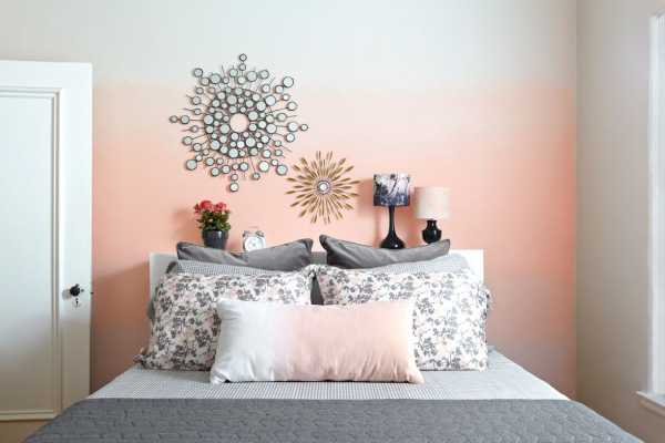 Эффект градиентаСпециалисты рекомендуют делать переход таким образом, чтобы более темный тон был у пола, а более светлый у потолка, это позволит зрительно увеличить комнату.