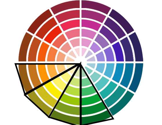 Чаще всего круг делят пополам, все оттенки желтого воспринимаются нами как теплые. Они подсознательно вызывают у человека чувство тепла, уюта и комфорта, поэтому позволяют создать в комнате приятную и гостеприимную обстановку. Такие тона мы ассоциируем с летом. Как правило, это: