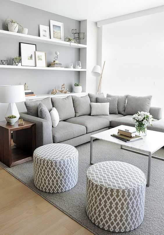 | Серый цвет и его оттенки могут быть выбраны в качестве основных для гостиной или спальни. Они уравновешивают настроение и не вызывают раздражения. Однако, если использовать только серую гамму, то комната будет смотреться скучной и неуютной. Серые оттенки хорошо сочетаются практически со всеми цветами, поэтому выбор «оживляющих» дополнений будет зависеть от предпочтения владельцев квартиры, а также от выбранного стиля интерьерного оформления. | |
