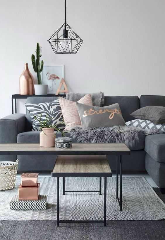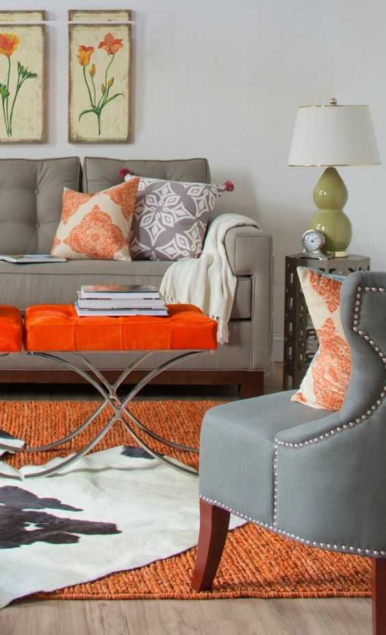 | Сочетание цветов в интерьере гостиной | Нейтральные, мягкие тона, которые разбавлены яркими акцентами. |