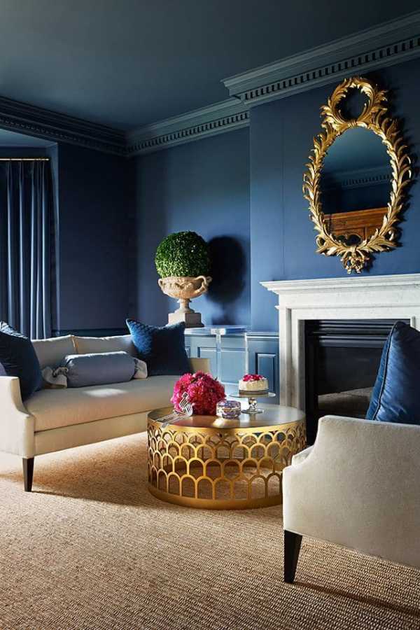 | Темно-синий цвет используется в сочетании с другими, близкими к нему или, наоборот, контрастными цветами — серым, голубым, желтым и т.д. Темно-синий не стоит использовать, как основной цвет, так как он визуально уменьшит комнату, но не добавит при этом в нее ни уюта, ни тепла. Он может быть применен вместе с вышеназванными цветами и их оттенками в гостиной или спальне, если цвет соответствует выбранному общему стилю оформления помещения. | |