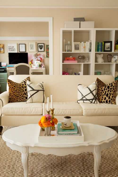 Интерьер, выполненный в разбеленных тонах с яркими контрастными вкраплениями
