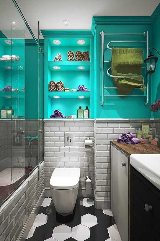 | Контрастное сочетание | Стены делают ярких тонов, пол темным, а потолок светлым. Можно визуально изменить размеры комнаты, скрыть существующие недостатки и выделить преимущества. |