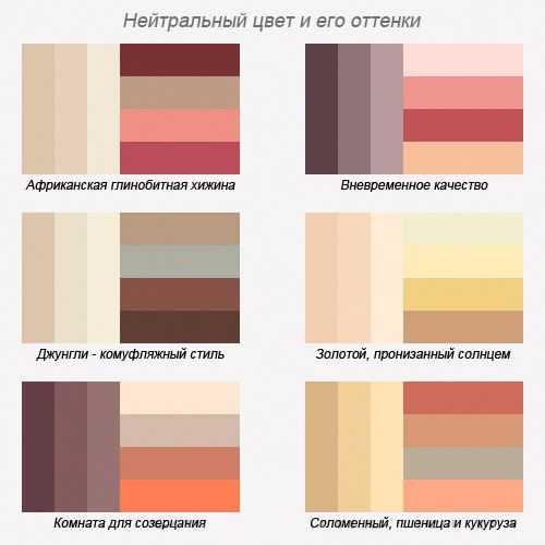 Оттенки, которые не вызывают у человека чувство тепла или прохлады, называются нейтральными. Если они располагаются рядом с теплыми или холодными оттенками, то сглаживают их воздействие и делают цвет более мягким.