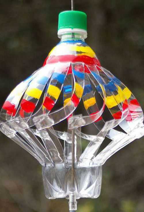 ΠΠΎΠ΄Π΅Π»ΠΊΠΈ ΠΈΠ· ΠΏΠ»Π°ΡΡΠΈΠΊΠΎΠ²ΡΡ Π±ΡΡΡΠ»ΠΎΠΊ Π΄Π»Ρ ΡΠ°Π΄Π° ΠΌΠΎΠ³ΡΡ Π±ΡΡΡ ΡΠ°Π·Π½ΡΠΌΠΈ, ΠΎΡ ΡΠΈΠ³ΡΡΠΎΠΊ ΠΆΠΈΠ²ΠΎΡΠ½ΡΡ Π΄ΠΎ Π²Π°Π· Π΄Π»Ρ ΡΠ²Π΅ΡΠΎΠ². Π‘Π΅ΠΉΡΠ°Ρ ΠΏΠΎΠ·Π½Π°ΠΊΠΎΠΌΠΈΠΌ ΡΠΈΡΠ°ΡΠ΅Π»Ρ Ρ ΠΈΠ·Π³ΠΎΡΠΎΠ²Π»Π΅Π½ΠΈΠ΅ΠΌ ΡΠ»ΡΠ³Π΅ΡΠ° ΠΈΠ· Π΄Π²ΡΡ Π»ΠΈΡΡΠΎΠ²ΠΎΠΉ Π΅ΠΌΠΊΠΎΡΡΠΈ. ΠΠΎΠΆΠ½ΠΎ Π²Π·ΡΡΡ ΠΏΡΠΎΠ·ΡΠ°ΡΠ½ΡΡ, ΠΊΠ°ΠΊ Π½Π° ΡΠΎΡΠΎ, Π° ΠΌΠΎΠΆΠ½ΠΎ ΡΠ²Π΅ΡΠ½ΡΡ. ΠΠ΅ΡΡΡΡΠΊΡ Π±ΡΠ΄Π΅ΠΌ ΡΡΡΠ°Π½Π°Π²Π»ΠΈΠ²Π°ΡΡ Π²Π΅ΡΡΠΈΠΊΠ°Π»ΡΠ½ΠΎ, ΠΏΡΠΈ Π΄ΡΠ½ΠΎΠ²Π΅Π½ΠΈΠΈ Π²Π΅ΡΡΠ° ΠΎΠ½Π° Π½Π°ΡΠ½Π΅Ρ ΠΊΡΡΡΠΈΡΡΡΡ Π²ΠΎΠΊΡΡΠ³ ΡΠ²ΠΎΠ΅ΠΉ ΠΎΡΠΈ, Π½Π°ΠΏΠΎΠ΄ΠΎΠ±ΠΈΠ΅ ΡΠ»Ρ. Π‘Π½Π°ΡΠ°Π»Π° ΠΏΠ»Π°ΡΡΠΈΠΊΠΎΠ²ΡΡ Π±ΡΡΡΠ»ΠΊΡ Π½ΡΠΆΠ½ΠΎ ΡΠ°Π·ΠΌΠ΅ΡΠΈΡΡ Π½Π° Π΄Π»ΠΈΠ½Π½ΡΠ΅ ΠΏΠΎΠ»ΠΎΡΠΊΠΈ, ΠΏΡΠΎΡ ΠΎΠ΄ΡΡΠΈΠ΅ Π²Π΅ΡΡΠΈΠΊΠ°Π»ΡΠ½ΠΎ ΡΠ²Π΅ΡΡ Ρ Π²Π½ΠΈΠ·. Π¨ΠΈΡΠΈΠ½Π° ΠΏΠΎΠ»ΠΎΡ Π΄ΠΎΠ»ΠΆΠ½Π° Π±ΡΡΡ 10-15 ΠΌΠΌ. Π ΠΎΠ²Π½ΠΎ ΠΏΠΎΡΠ΅ΡΠ΅Π΄ΠΈΠ½Π΅ Π΅ΠΌΠΊΠΎΡΡΡ ΡΠ°Π·ΡΠ΅Π·Π°Π΅ΡΡΡ ΠΏΠΎΠΏΠΎΠ»Π°ΠΌ.