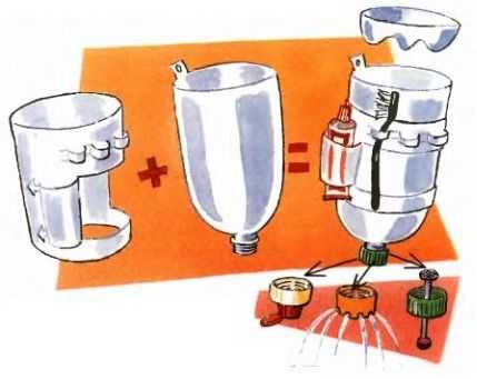ΠΠ· 5 Π»ΠΈΡΡΠΎΠ²ΠΎΠΉ Π±ΡΡΡΠ»ΠΊΠΈ ΠΌΠΎΠΆΠ½ΠΎ ΡΠ΄Π΅Π»Π°ΡΡ ΠΈΠ½ΡΠ΅ΡΠ΅ΡΠ½ΡΠΉ ΡΡΠΊΠΎΠΌΠΎΠΉΠ½ΠΈΠΊ. ΠΠ»Ρ ΡΡΠΎΠ³ΠΎ Π½ΡΠΆΠ΅Π½ Π·Π°Π±ΠΎΡ ΠΈΠ»ΠΈ ΡΡΠ΅Π½Π°, ΠΏΠ°ΡΡ ΡΡΡΡΠΏΠΎΠ² ΠΈ Π±ΡΡΡΠ»ΠΊΠ° ΡΠΎ ΡΡΠ΅Π·Π°Π½Π½ΡΠΌ Π΄Π½ΠΎΠΌ. ΠΡΡΡΠ»ΠΊΡ Π²Π½ΠΈΠ· Π³ΠΎΡΠ»ΡΡΠΊΠΎΠΌ ΠΏΡΠΈΠΊΡΡΡΠΈΠ²Π°ΡΡ Π² ΠΏΠΎΠ²Π΅ΡΡ Π½ΠΎΡΡΠΈ ΠΈ Π½Π°Π»ΠΈΠ²Π°ΡΡ Π²ΠΎΠ΄Ρ. ΠΡΠ»ΠΈ ΡΠ»Π΅Π³ΠΊΠ° ΠΎΡΠΊΡΡΡΠΈΠ²Π°ΡΡ ΠΏΡΠΎΠ±ΠΊΡ Π²ΠΎΠ΄Π° Π±ΡΠ΄Π΅Ρ Π»ΠΈΡΡΡΡ Π²Π°ΠΌ Π² ΡΡΠΊΠΈ.